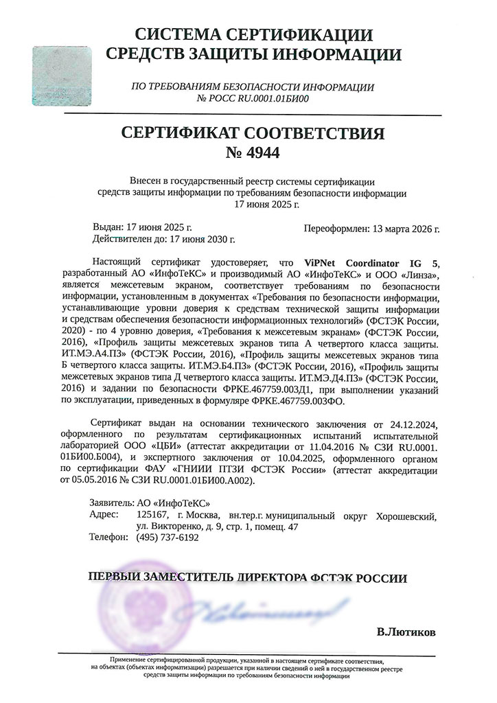 | Версия ПО | Только обновление с ViPNet Coordinator IG4 | 5.1 и выше | 5.1 и выше | 5.2 и выше | 5.2 и выше | 5.2 и выше | |