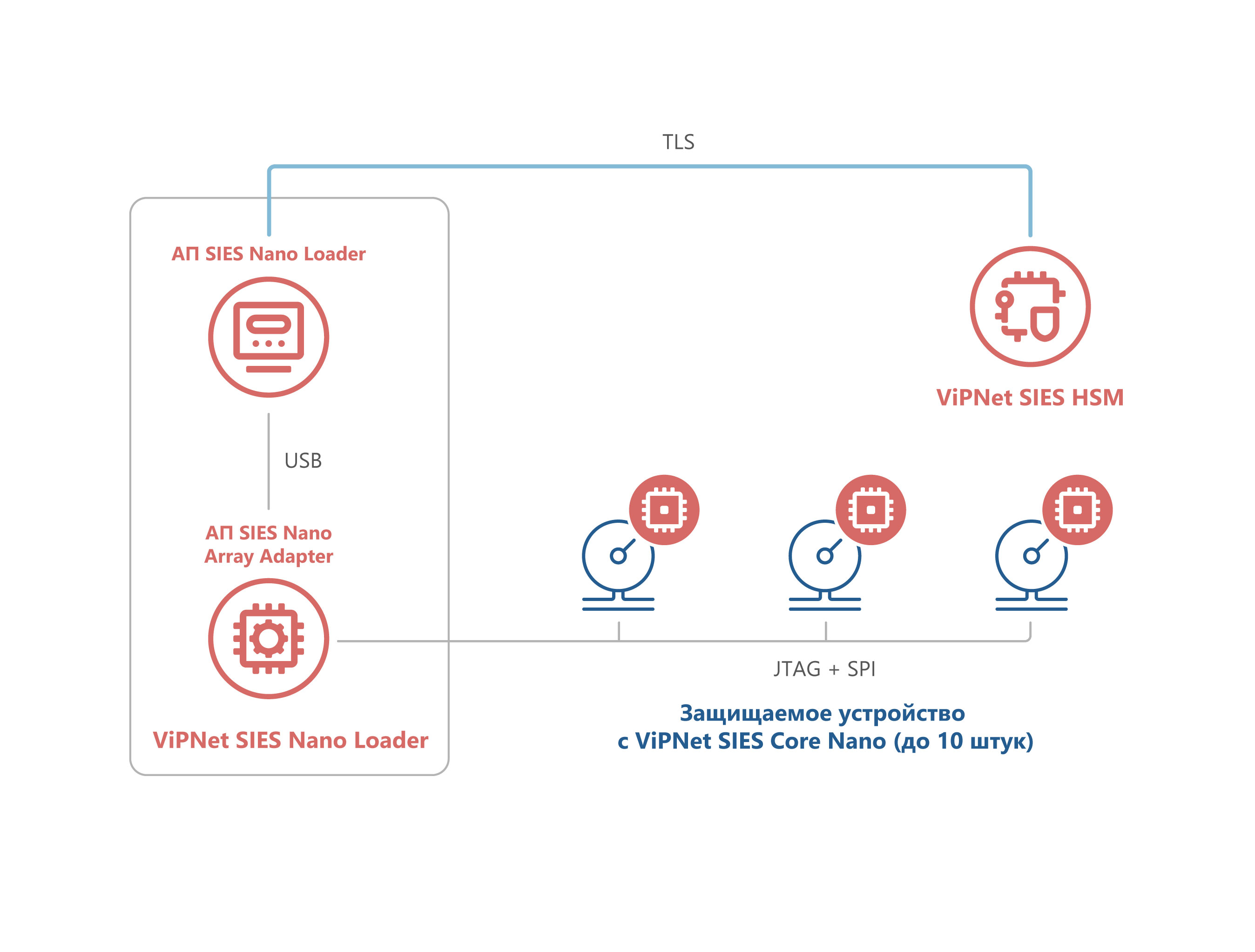 Программно-аппаратный комплекс (ПАК) ViPNet SIES Nano Loader предназначен для организации автоматизированного рабочего места по подготовке к эксплуатации крипточипов ViPNet SIES Core Nano. ViPNet SIES Nano Loader используется при производстве защищаемых устройств со встроенным ViPNet SIES Core Nano.